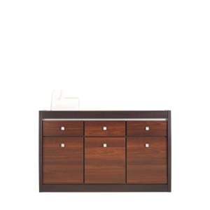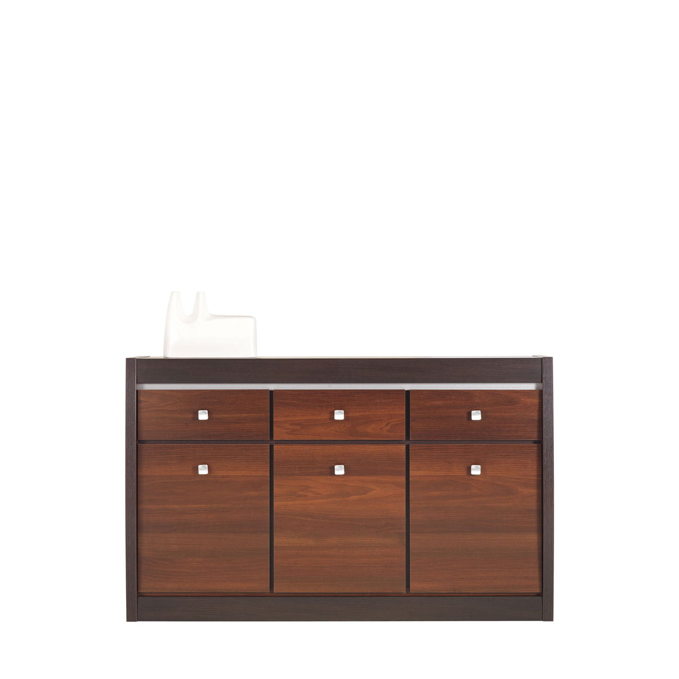 Potrójne drzwi ułatwią dostęp do wnętrza komody, w której możesz poukładać książki, tekstylia lub elementy zastawy stołowej. Na szczególną uwagę zasługuje przestrzeń ekspozycyjna na blacie, na którym można ustawić piękne dekoracje czy kwiaty.