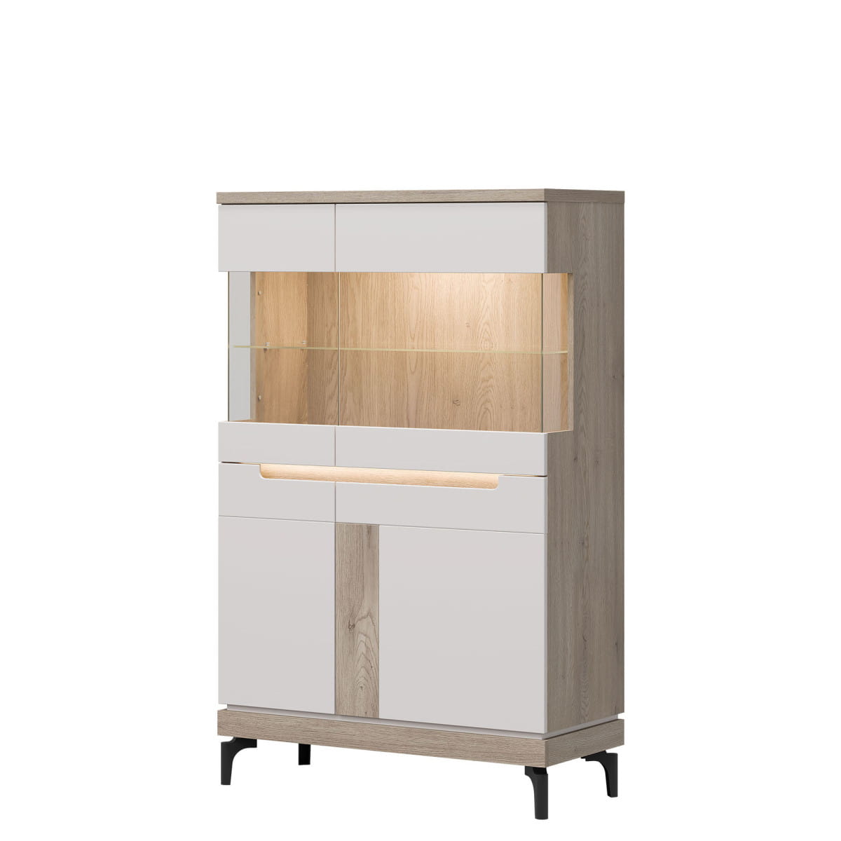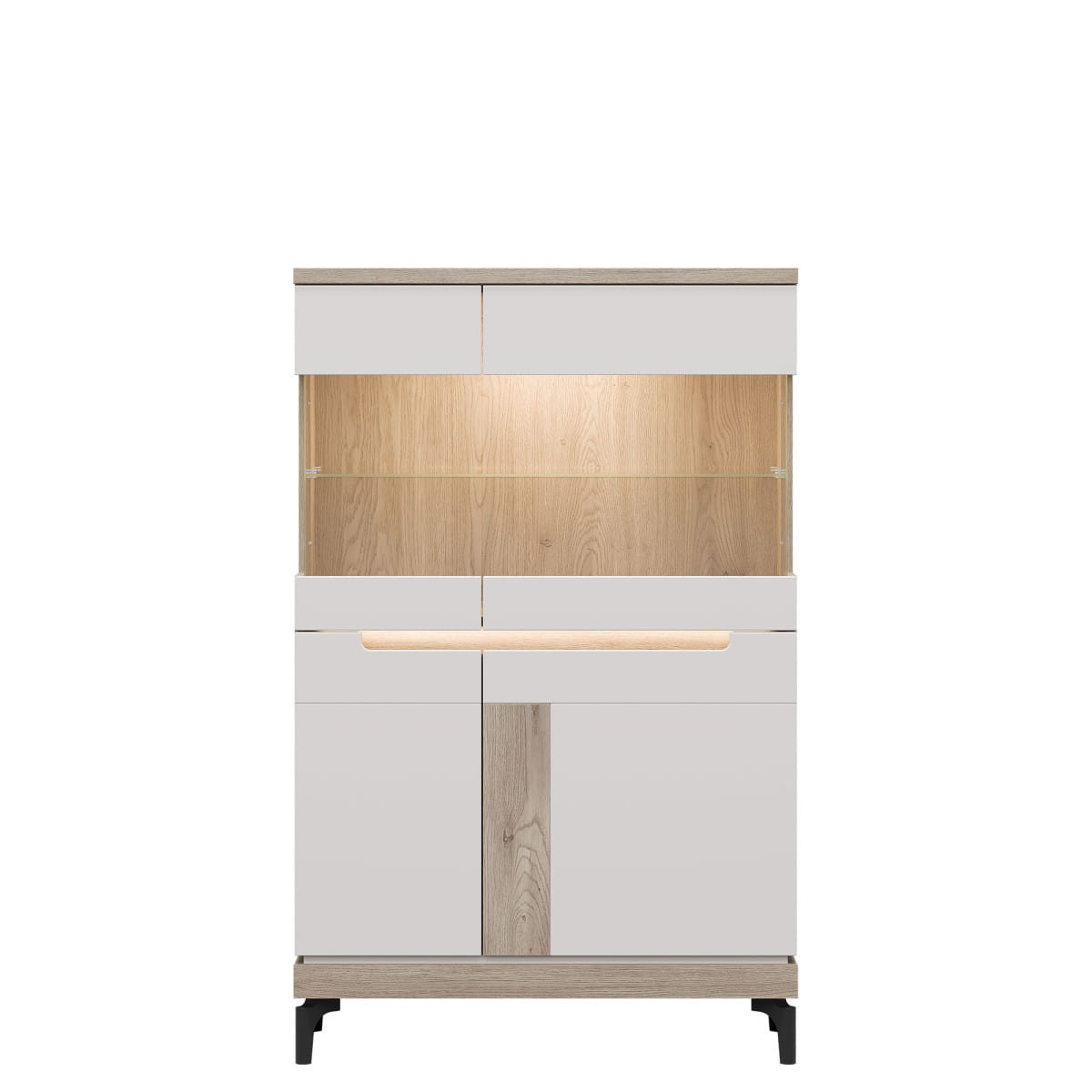 Witryna niska z kolekcji Aston, model AN04, oferuje nie tylko elegancki design i funkcjonalność, ale również szereg dodatkowych opcji i cech, które sprawią, że stanie się centralnym punktem Twojego wnętrza. Dodatkowe podświetlenie LED witryny dodaje jej wyjątkowego uroku i ekskluzywnego wyglądu, tworząc przyjemną atmosferę w pomieszczeniu. Korzystając z wysokiej jakości płyty laminowanej, witryna niska z kolekcji Aston zapewnia nie tylko trwałość i odporność na uszkodzenia, ale także estetyczny wygląd, który zachowa się przez wiele lat. Szkło hartowane zastosowane w szybach frontowych witryny gwarantuje nie tylko bezpieczeństwo użytkowania, ale także doskonałą przejrzystość i elegancję, podkreślając zawartość witryny.