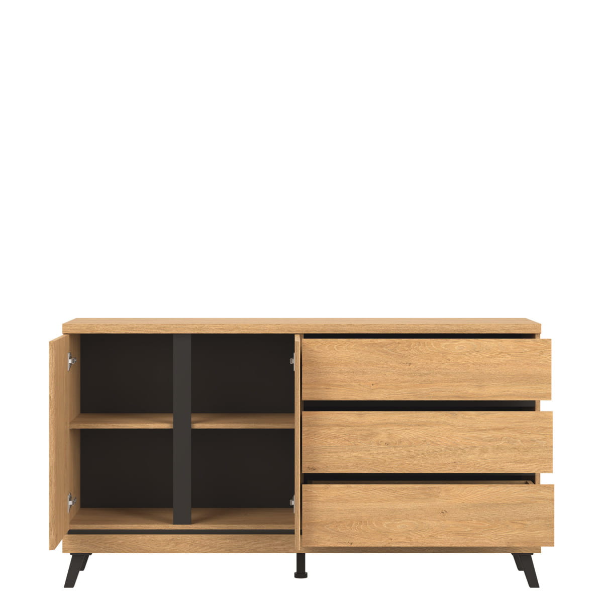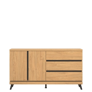 Komoda ATE AT03 o uniwersalnym zastosowaniu wyposażona została w trzy szuflady przestronną szafkę z jedna półką, która umożliwi dobrą organizację dla potrzebnych drobiazgów.