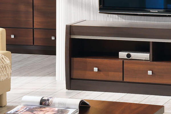 Szafka RTV FORREST FR02 to elegancka bryła, która doskonale sprawdzi się jako pojedynczy element pokoju dziennego, lub jako zestaw z szafką FR04, półką FR14 oraz szafką wiszącą FR16.