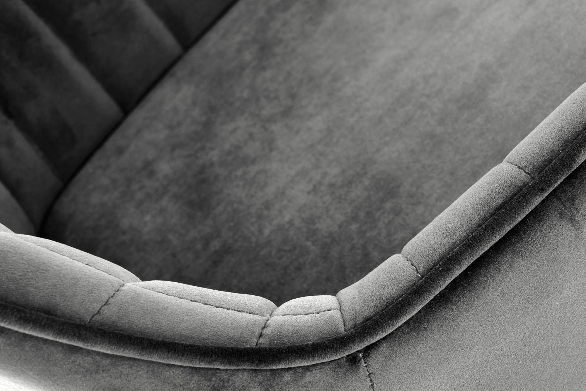 Hoker H103 marki Halmar to stylowy i funkcjonalny mebel, który doskonale wpasuje się w nowoczesne wnętrza. Siedzisko tapicerowane aksamitną tkaniną velvet w eleganckim odcieniu popielatym zapewnia komfort i luksusowy wygląd, a malowana proszkowo stalowa podstawa gwarantuje stabilność i trwałość.