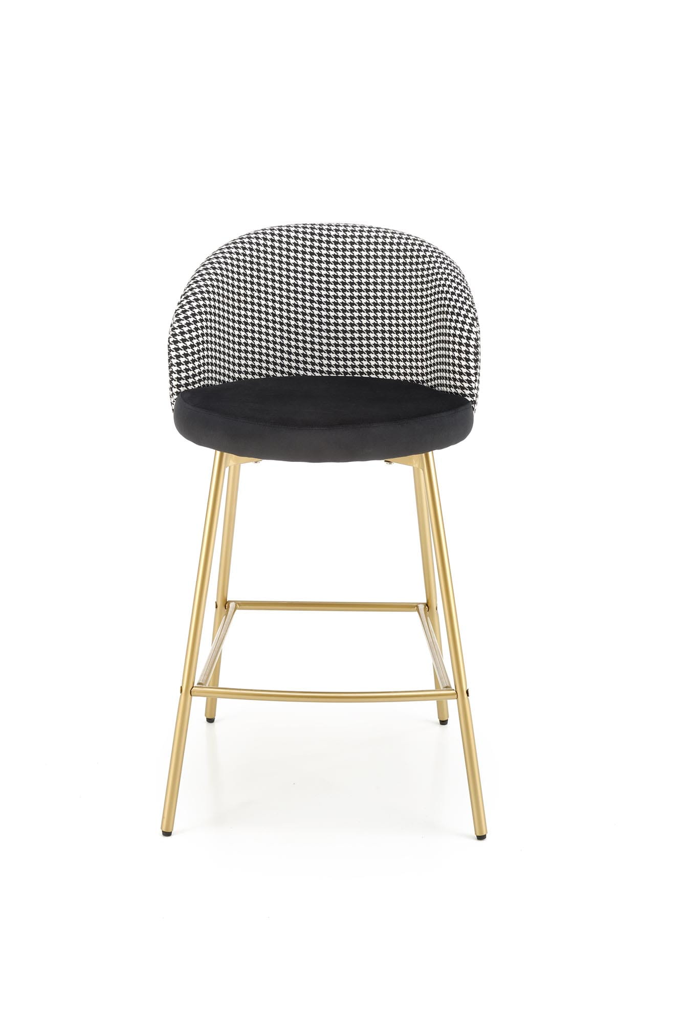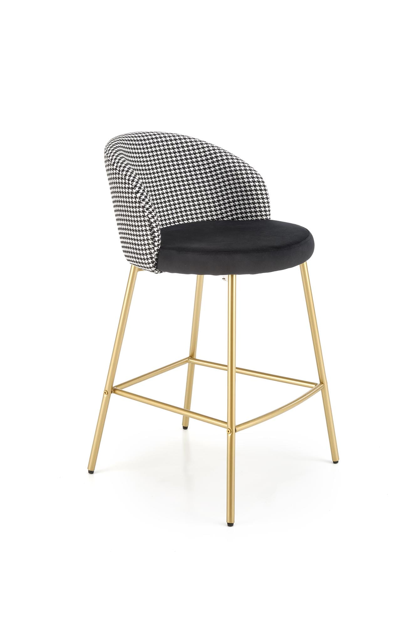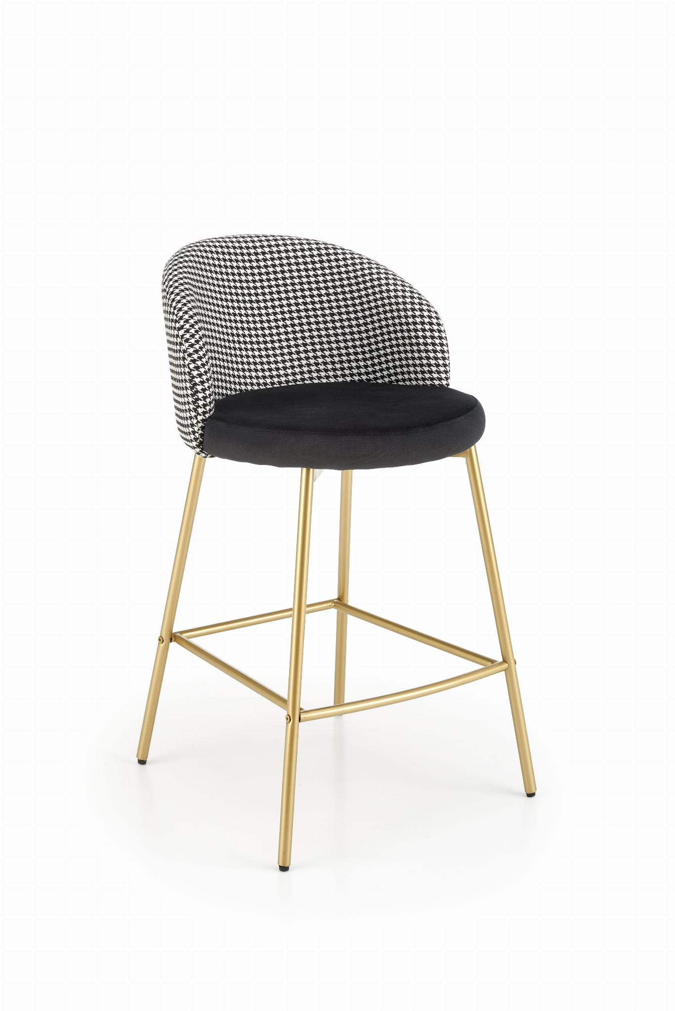 Hoker H113 marki Halmar to stylowe połączenie kontrastowych kolorów i luksusowych materiałów. Tapicerowane aksamitną tkaniną velvet siedzisko w klasycznej czerni, zestawione z białym oparciem oraz złotą, malowaną proszkowo stalową podstawą, nadaje wnętrzu wyjątkowego charakteru.