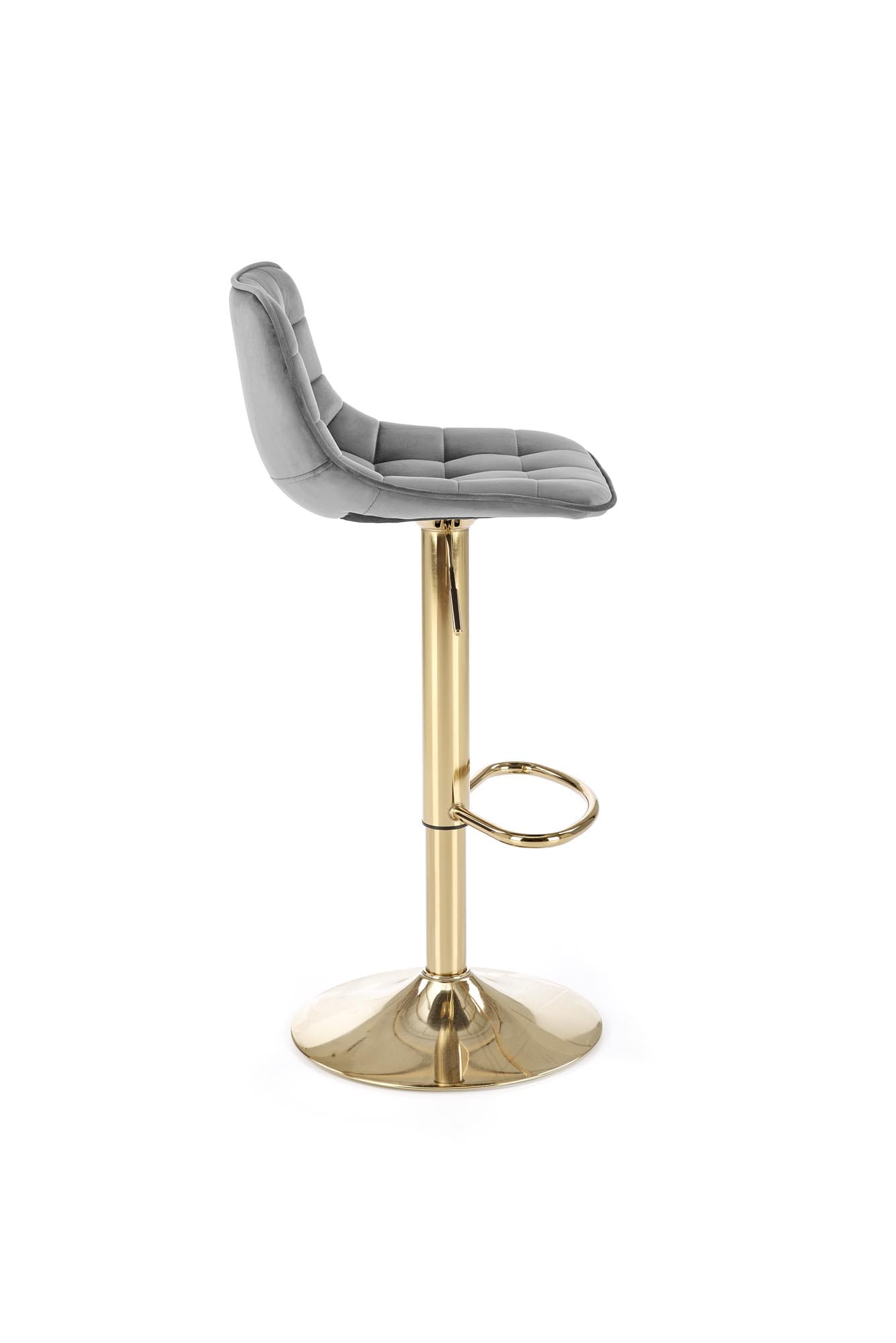 Hoker H120 marki Halmar to luksusowe połączenie stylowego designu i komfortu. Siedzisko tapicerowane aksamitną tkaniną velvet w eleganckim odcieniu ciemnego popielu nadaje wnętrzu wyrafinowanego charakteru, a złote, chromowane nogi dodają mu ekskluzywnego wyglądu. Dzięki regulowanej wysokości siedziska hoker można dopasować do różnych blatów i wysp kuchennych.