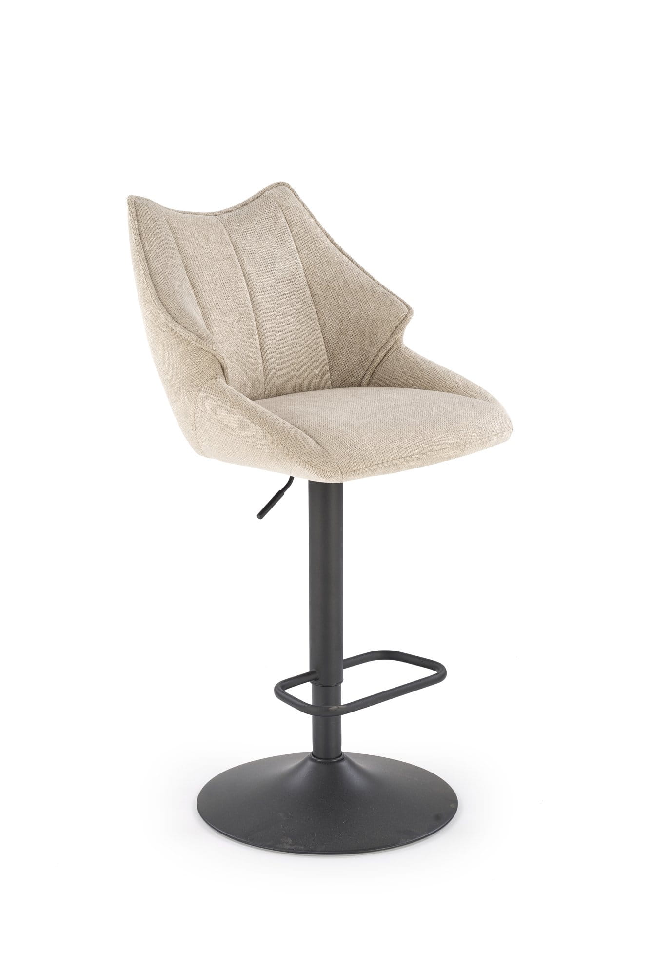 Hoker H122 marki Halmar to stylowe połączenie tapicerowanego siedziska z tkaniny VARDO i solidnej, malowanej proszkowo stalowej podstawy. Beżowe obicie nadaje wnętrzu ciepła i elegancji, a czarne nogi podkreślają nowoczesny charakter mebla. Regulowana wysokość siedziska pozwala na idealne dopasowanie do różnych wysokości blatów, co sprawia, że hoker świetnie sprawdzi się w kuchniach, jadalniach i przestrzeniach barowych.