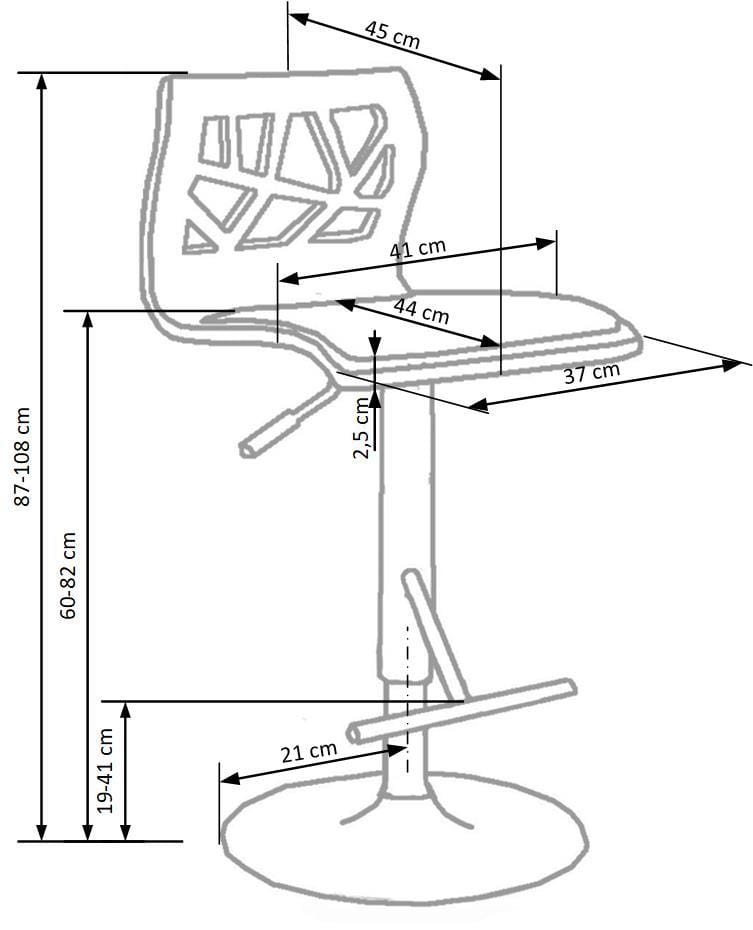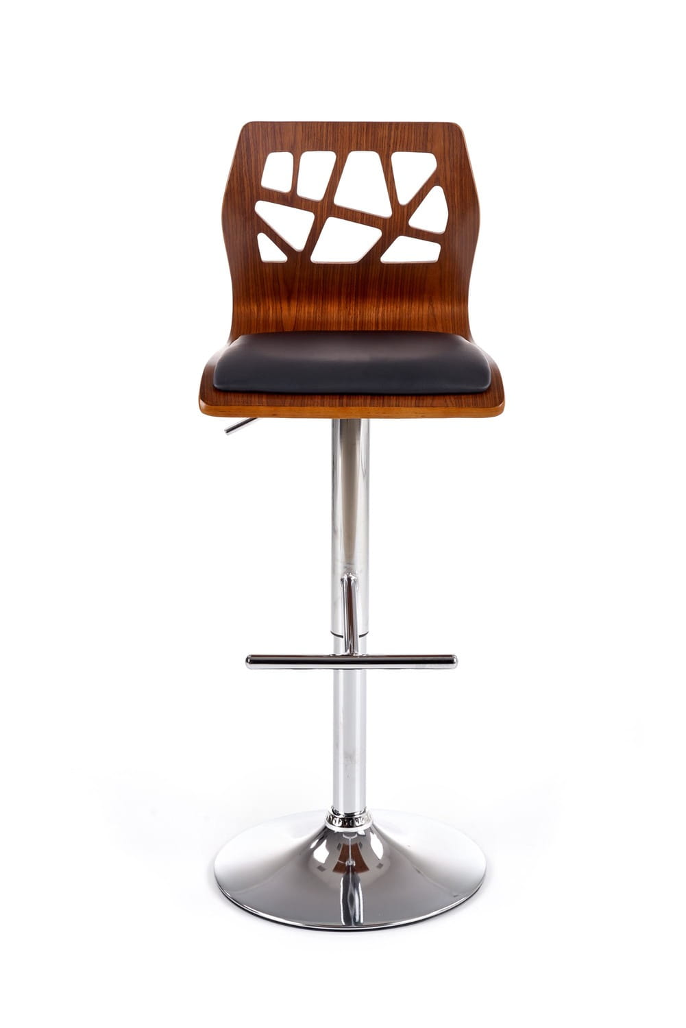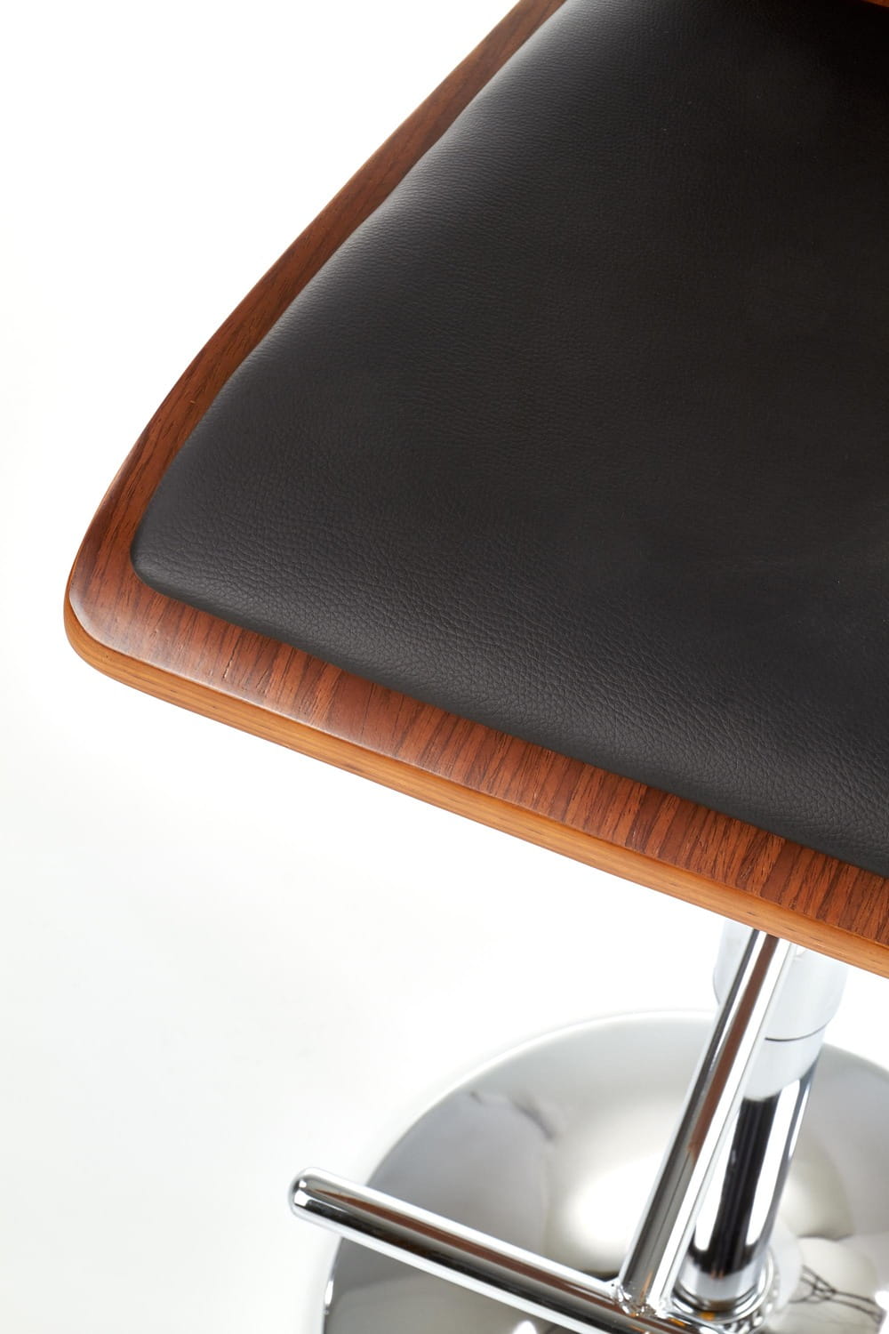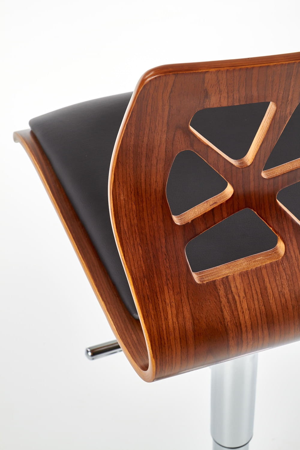 Hoker H34 marki Halmar to stylowy i funkcjonalny mebel, który łączy klasyczne materiały z nowoczesnym wykończeniem. Gięta sklejka w kolorze orzecha nadaje mu naturalnego uroku, a czarna eco skóra na siedzisku zapewnia komfort i elegancki wygląd. Całość uzupełnia chromowana stalowa podstawa z funkcją regulacji wysokości, co czyni hoker wszechstronnym rozwiązaniem do kuchni, jadalni czy przestrzeni barowej.