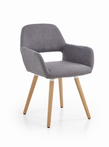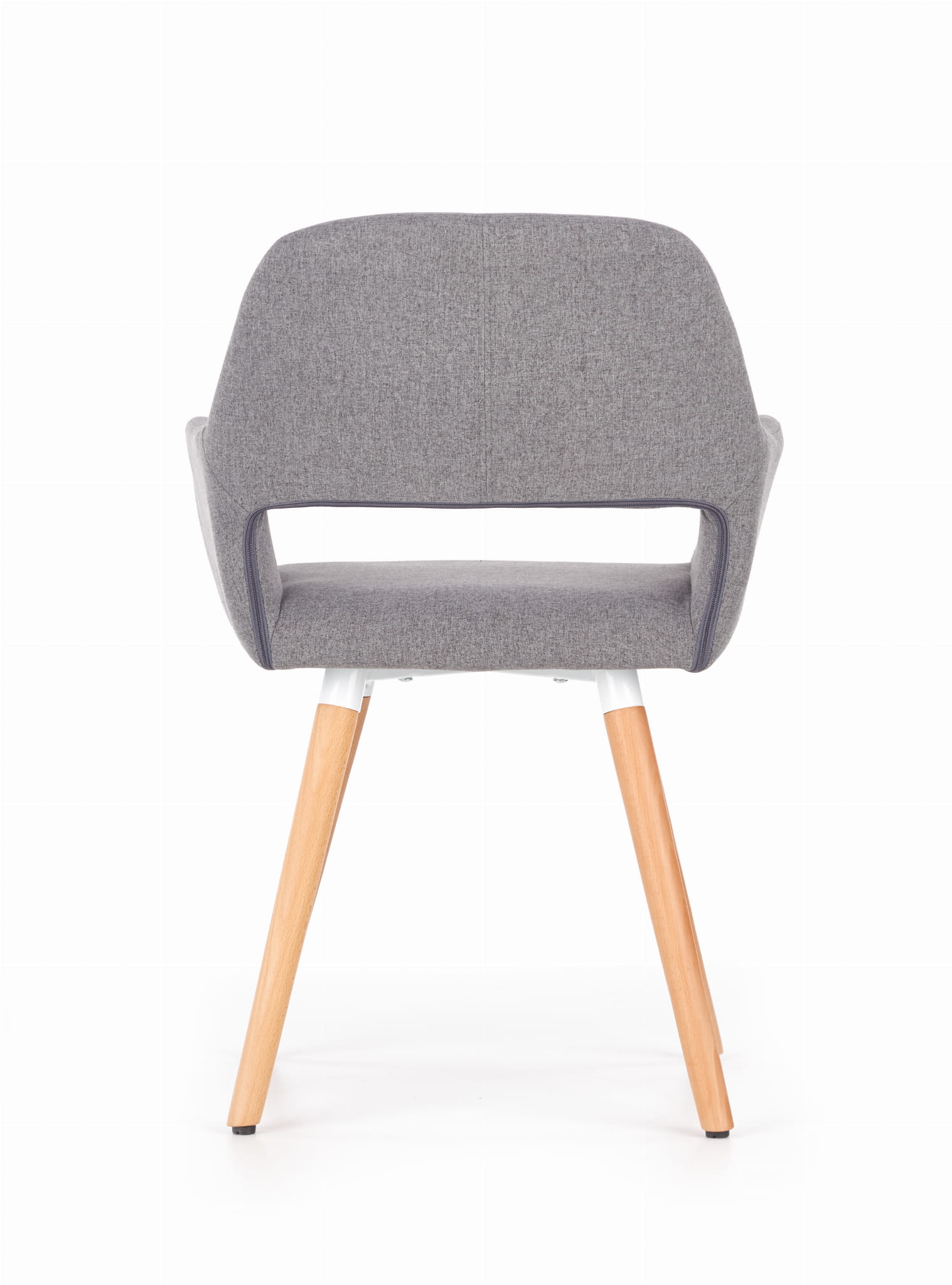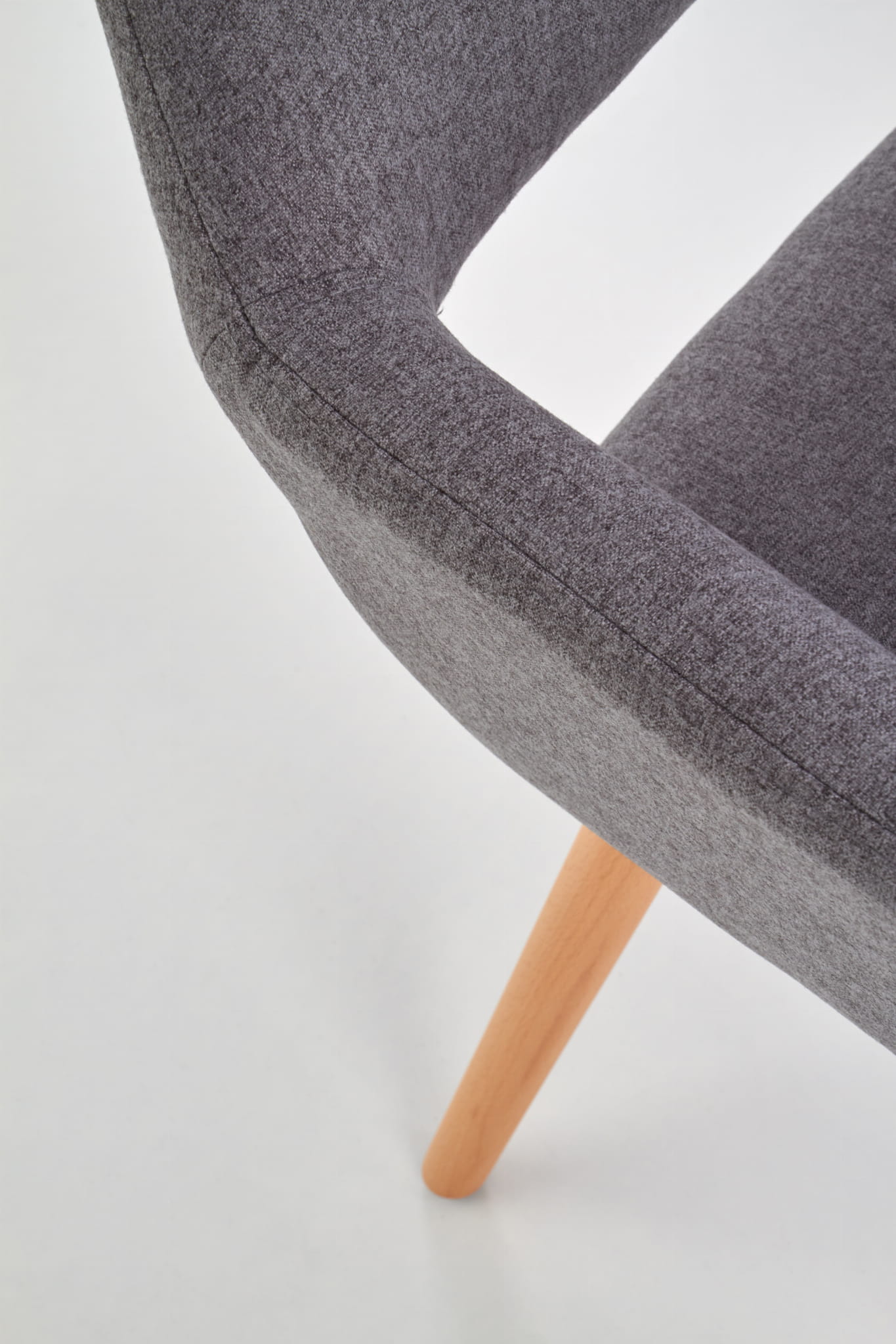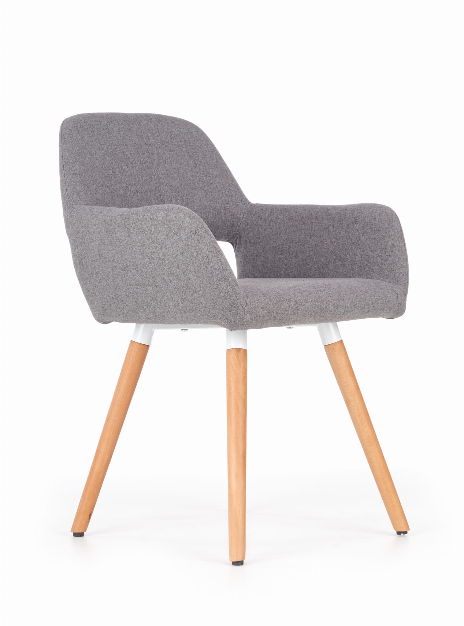 Krzesło K283 to elegancki model, który łączy tapicerkę z miękkiej tkaniny w popielatym kolorze z litego drewna, tworząc przytulny, a jednocześnie nowoczesny design. Jego zaokrąglone oparcie i szerokie siedzisko zapewniają wysoki komfort użytkowania, co sprawia, że doskonale sprawdzi się zarówno w jadalni, salonie, jak i biurze.