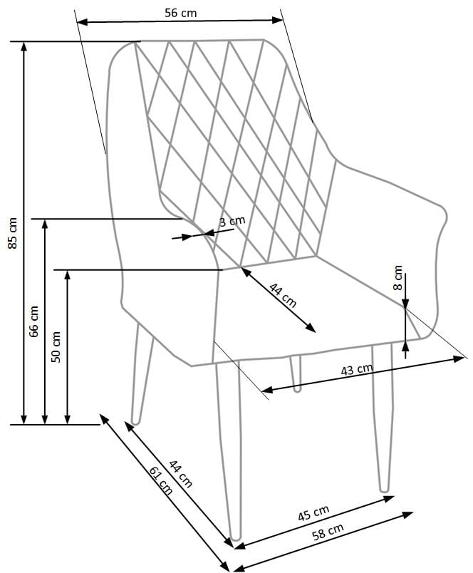 - Wymiary: 58 × 61 × 85 × 50 cm