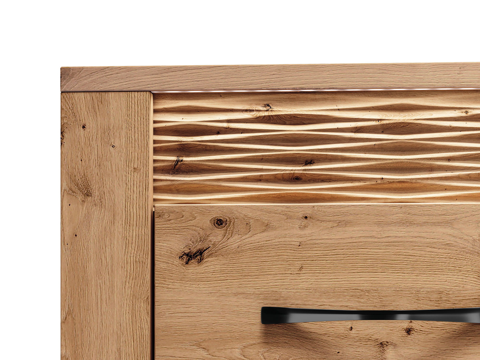 Naturalny rysunek drewna, piękne usłojenie, wyraźne sęki podkreślają charakter mebla.