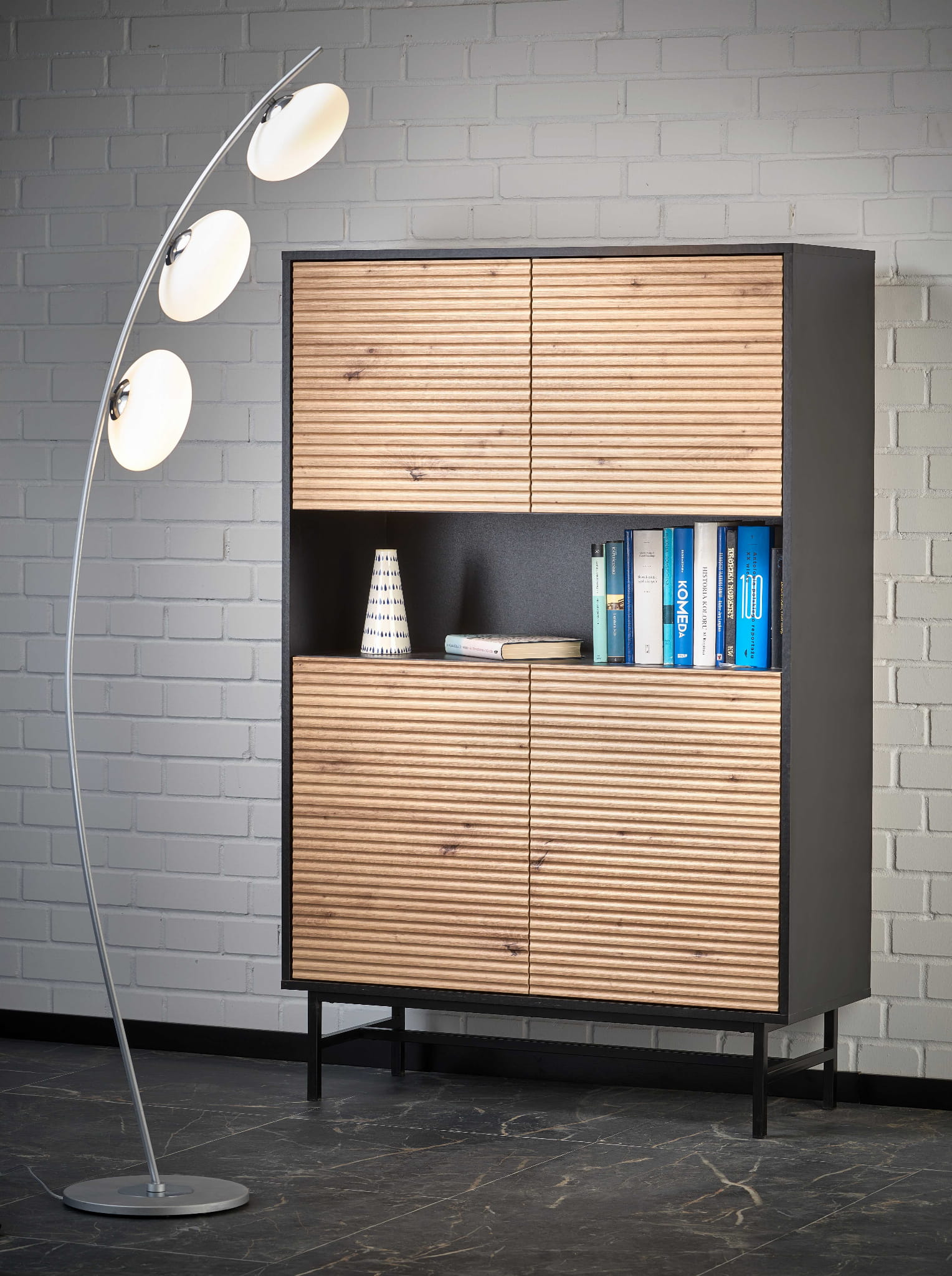 - Materiał: MDF okleinowany, płyta meblowa okleinowana, stal malowana proszkowo.