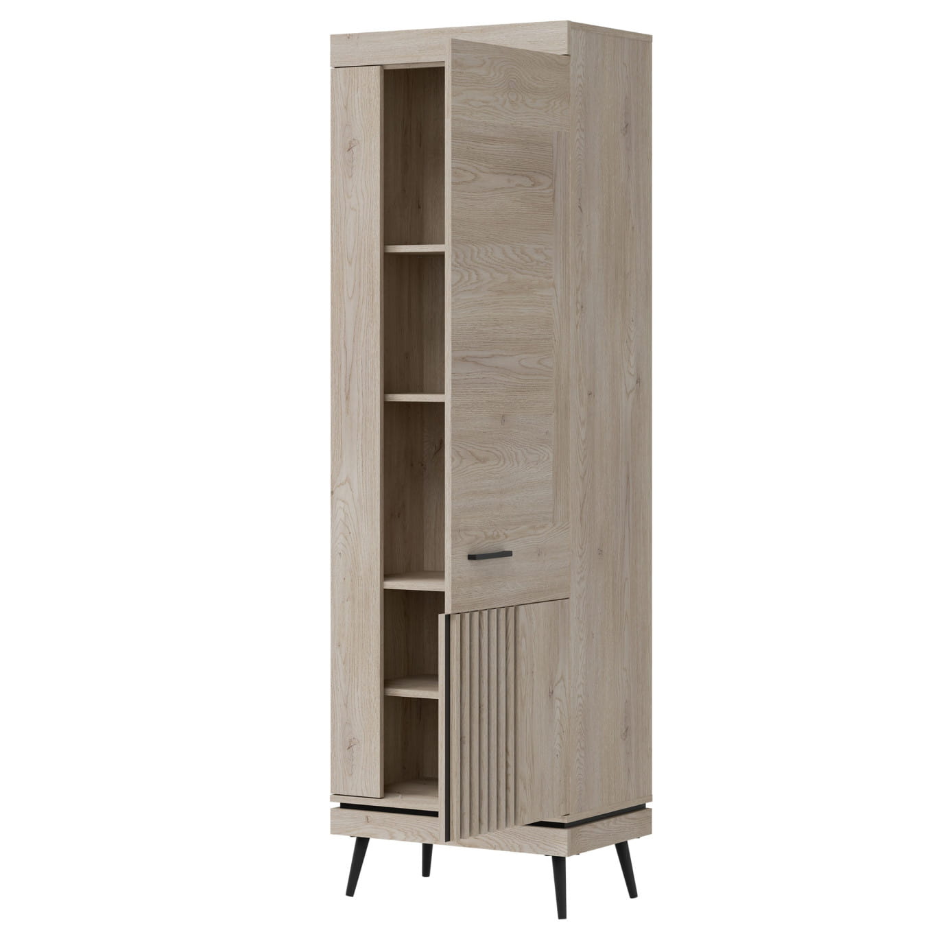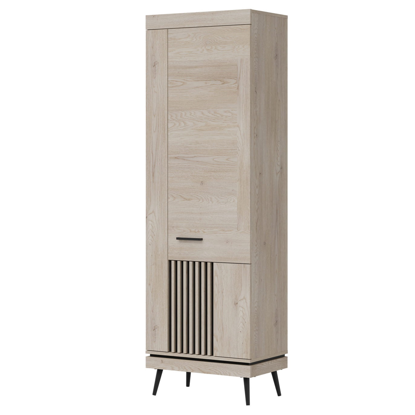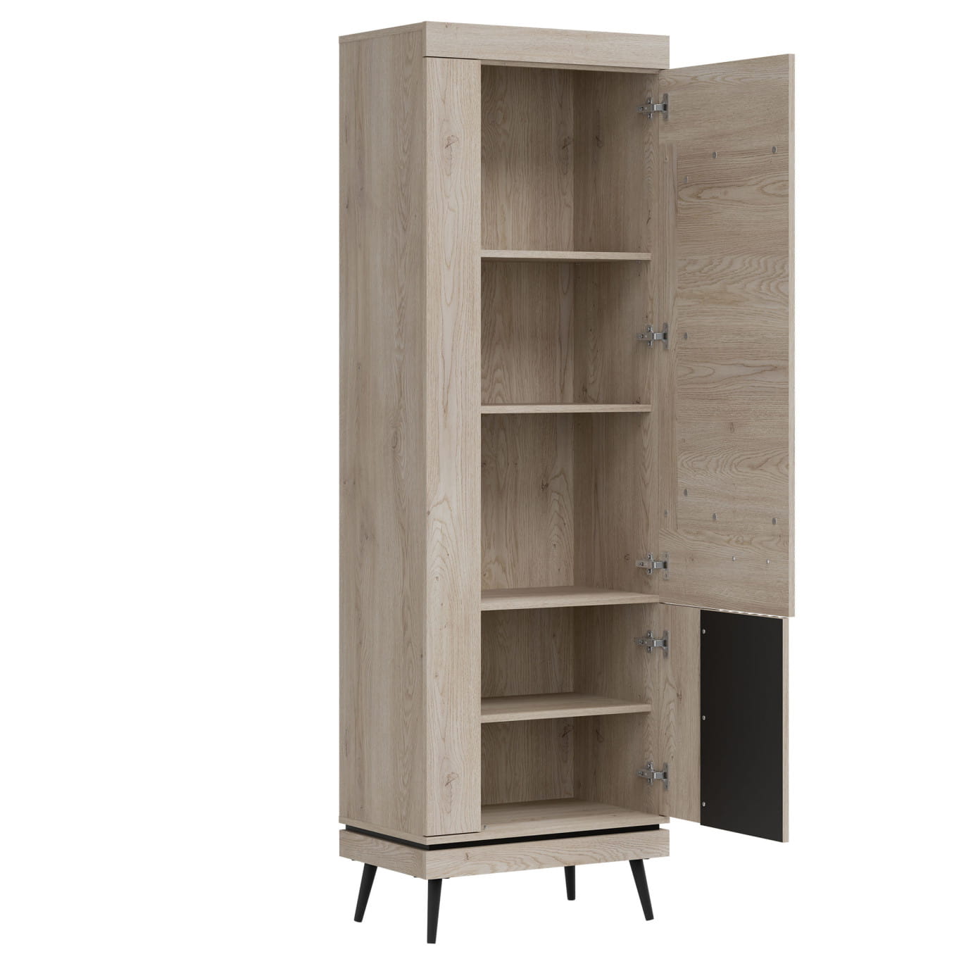 Posiada wymiary 64 cm szerokości, 40 cm głębokości i 198 cm wysokości, co czyni ją przestronną i funkcjonalną. Dzięki systemowi cichego domyku drzwi użytkowanie jest komfortowe i bezproblemowe.