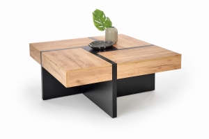 Ława SEVILLA to stylowy i funkcjonalny mebel, który doskonale wpasuje się w nowoczesne, industrialne oraz loftowe wnętrza. Duży, kwadratowy blat w wybarwieniu dąb craft nadaje całości eleganckiego i naturalnego wyglądu, a solidne czarne, matowe nogi podkreślają jej nowoczesny charakter.