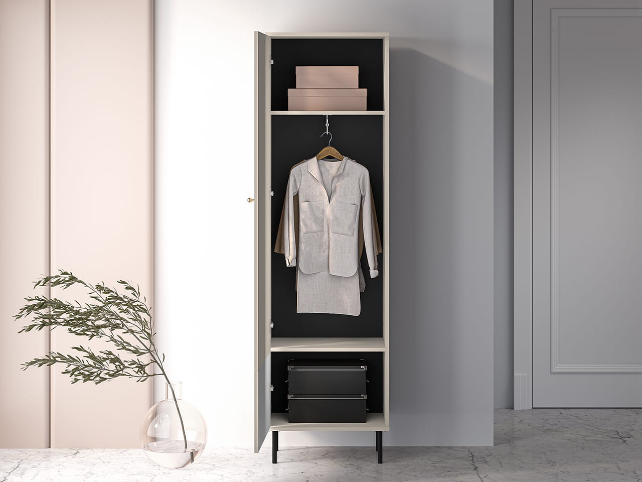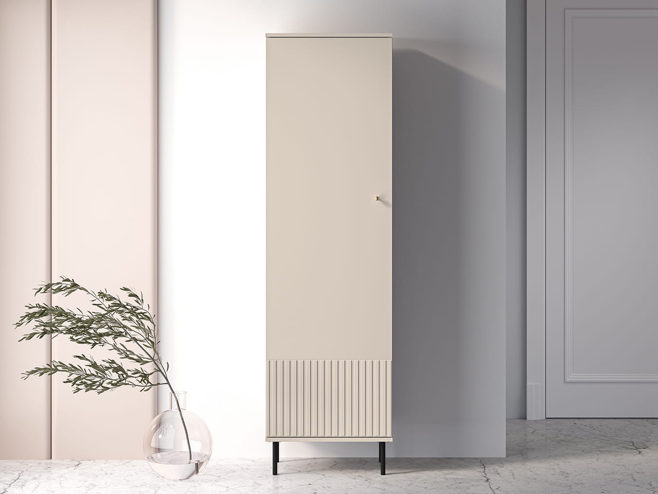 SOPHIE 12 SZAFA Szafa Sophie 12 to mebel, w którym przechowasz odzież wierzchnią, buty oraz dodatki. Funkcjonalny, wysuwany wieszak zapewni komfort użytkowania, ułatwiając dostęp do ubrań zawieszonych w jego tylnej części. Półka górna sprawdzi się jako miejsce na czapki, szaliki, kapelusze i pozostałe akcesoria. Dolna wnęka sprawdzi się jako miejsce na buty, torby lub niewielką walizkę. Sophie 12 to nie tylko funkcjonalność. Nasz mebel to synonim współczesnej elegancji. Kaszmirowy dekor, frezowane fronty MDF, gałki w kolorze szczotkowanego złota oraz dyskretne czarne nóżki to kwintesencja całej kolekcji Sophie. • Funkcjonalny mebel w pięknym wydaniu. • Dodatkowy komfort użytkowania, dzięki zawiasom z systemem cichego domyku. • Możliwość montażu drzwi prawo-lewo. • Wysokie metalowe nóżki ułatwiające sprzątanie. KolorystykaFront Cashmere + MDF Cashmere Korpus Cashmere Cashmere + MDF Cashmere + Cashmere Parametry produktu Wysokość [cm]: 190 Szerokość [cm]: 55 Głębokość [cm]: 34 Waga [kg]: 35 Objętość [m3]: 0,355 Ilość paczek: 2 Zawartość szkła: MEBLE W PACZKACH DO SAMODZIELNEGO MONTAŻU