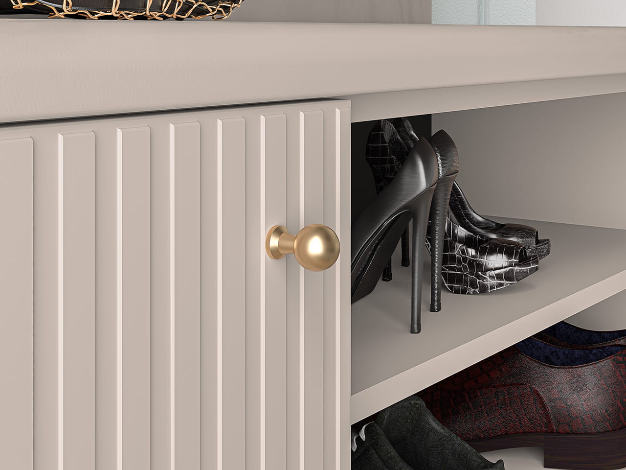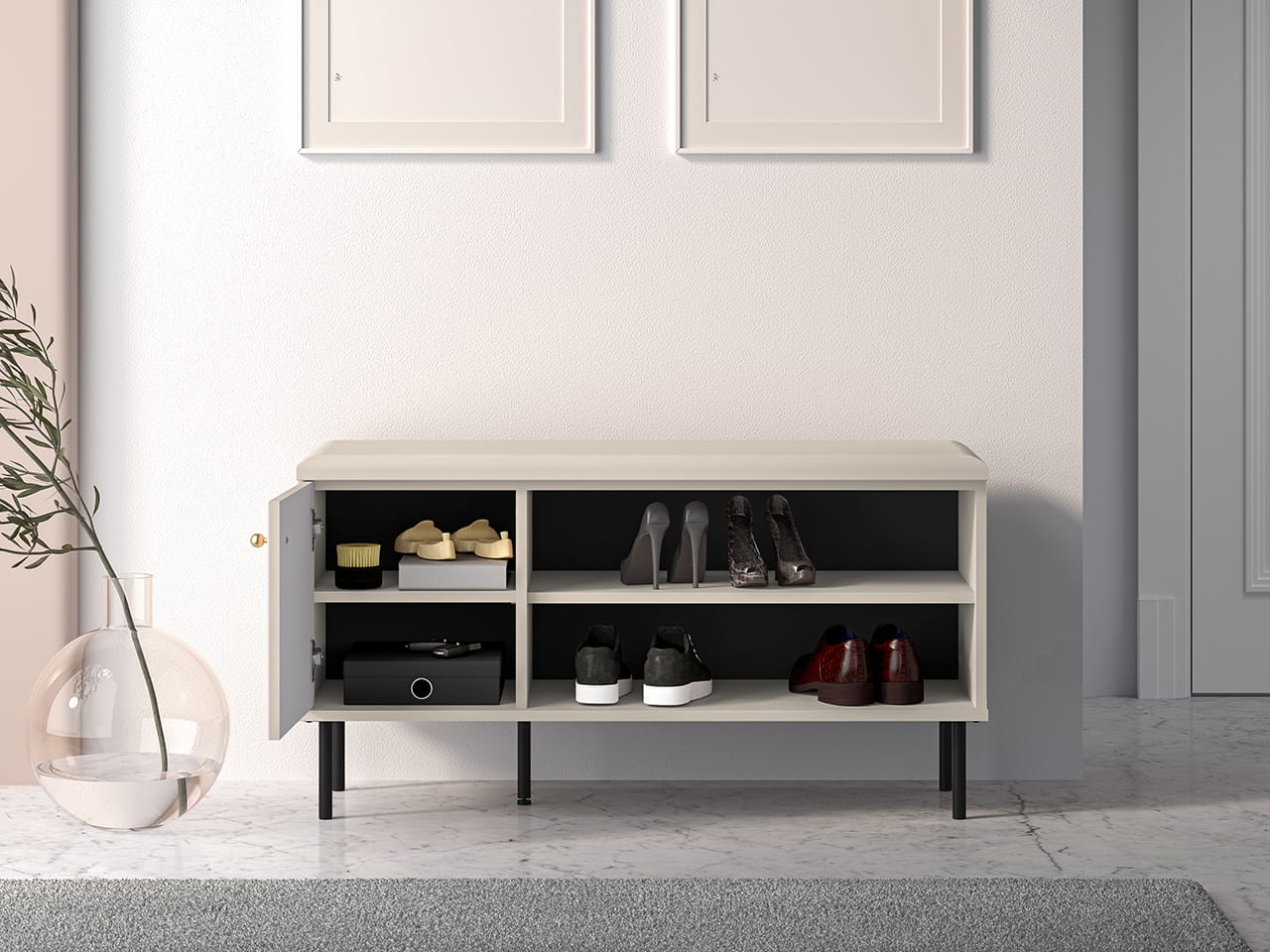 Dwie szerokie, otwarte wnęki zapewnią optymalną ilość miejsca na kilka par butów.