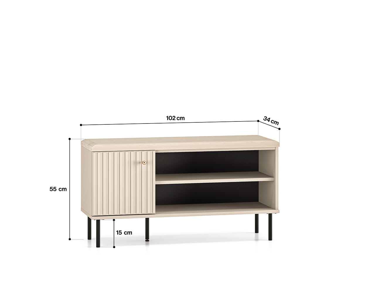 Miękkie, tapicerowane siedzisko w barwie zbliżonej do płyty to istotny atut, wpływający na komfort użytkowania. Sophie 15 to nie tylko praktyczne rozwiązanie do przedpokoju.