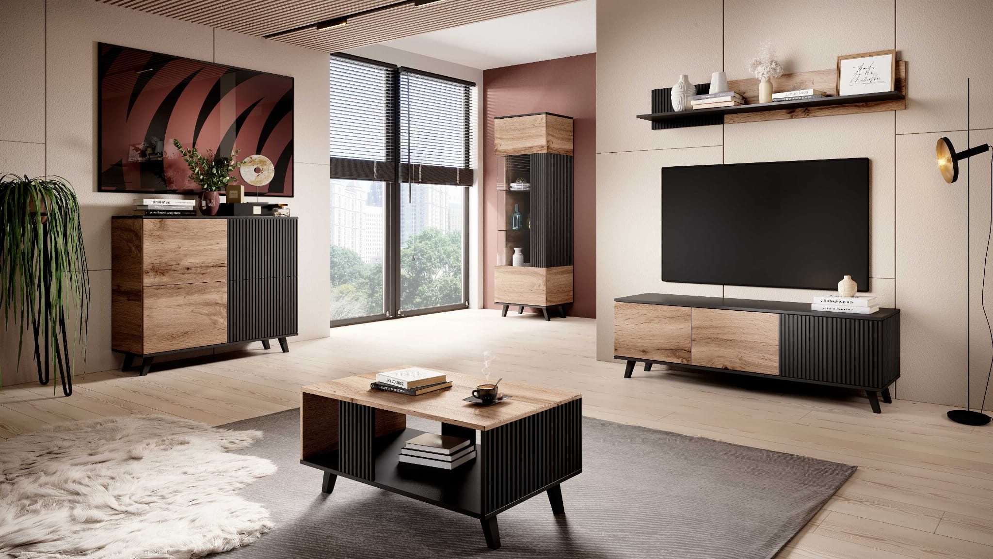 Stolik RTV MURANO RTV-1 z kolekcji RANDOM to niezwykle stylowy mebel, który doskonale wpisuje się w nowoczesne i loftowe wnętrza. Jego innowacyjny charakter bryły stanowią frezowane fronty oraz zestawienie kolorystyczne czerni z dębem artisan. Funkcjonalność stolika RTV MURANO RTV-1 zapewnia podział na uchylne drzwiczki oraz szuflady.