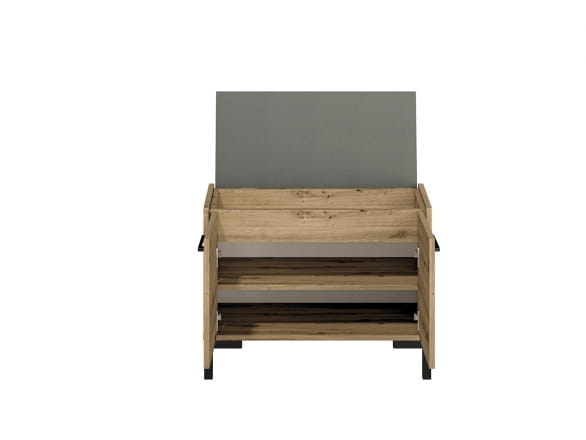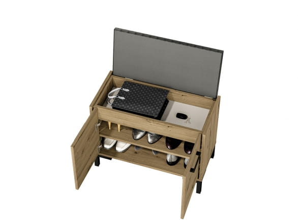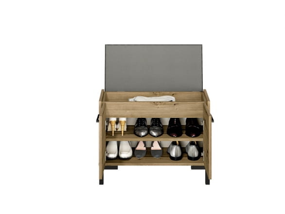 Szafka na buty NEVIO 04 to przemyślane rozwiązanie pozwalające na utrzymanie porządku na korytarzu. Szafka zawiera wygodne tapicerowane siedzisko wraz z pojemnym schowkiem na akcesoria. Ponadto utrzymanie czystości dzięki wysokim nóżkom szafki nie będzie stanowiło najmniejszego problemu.