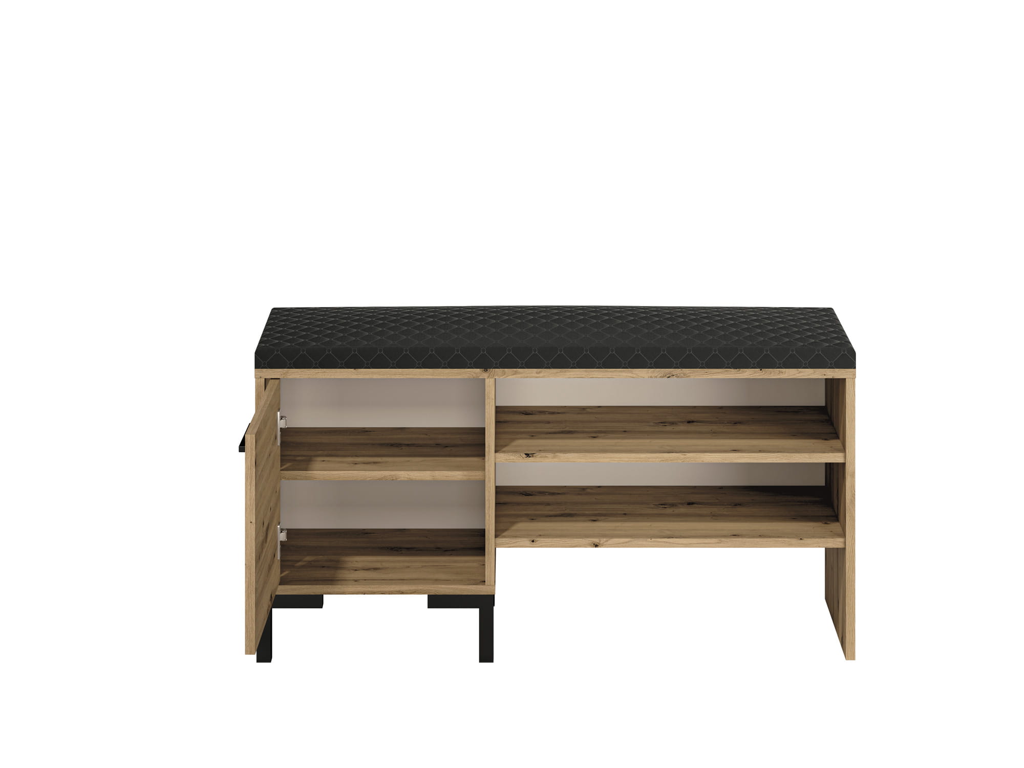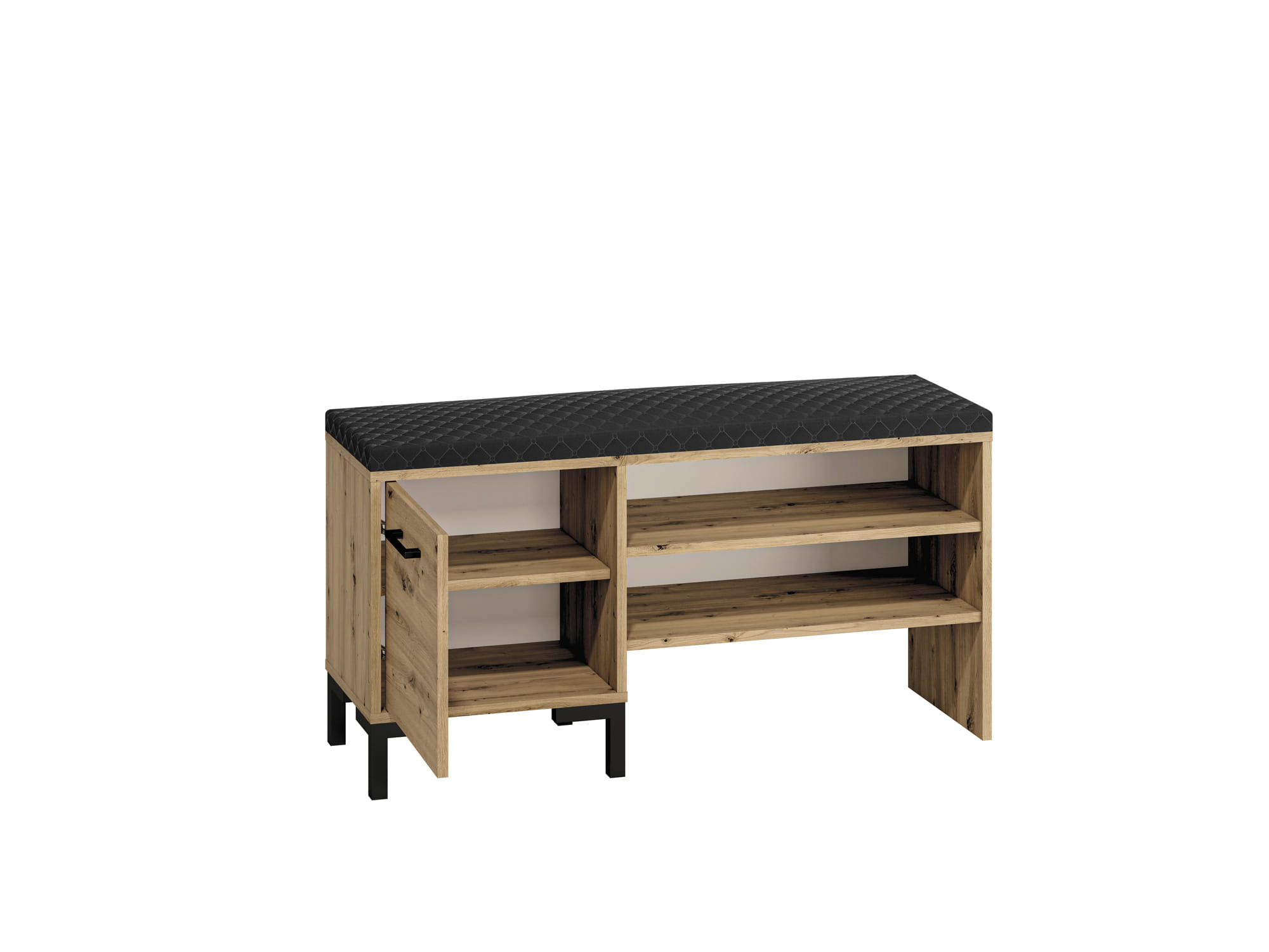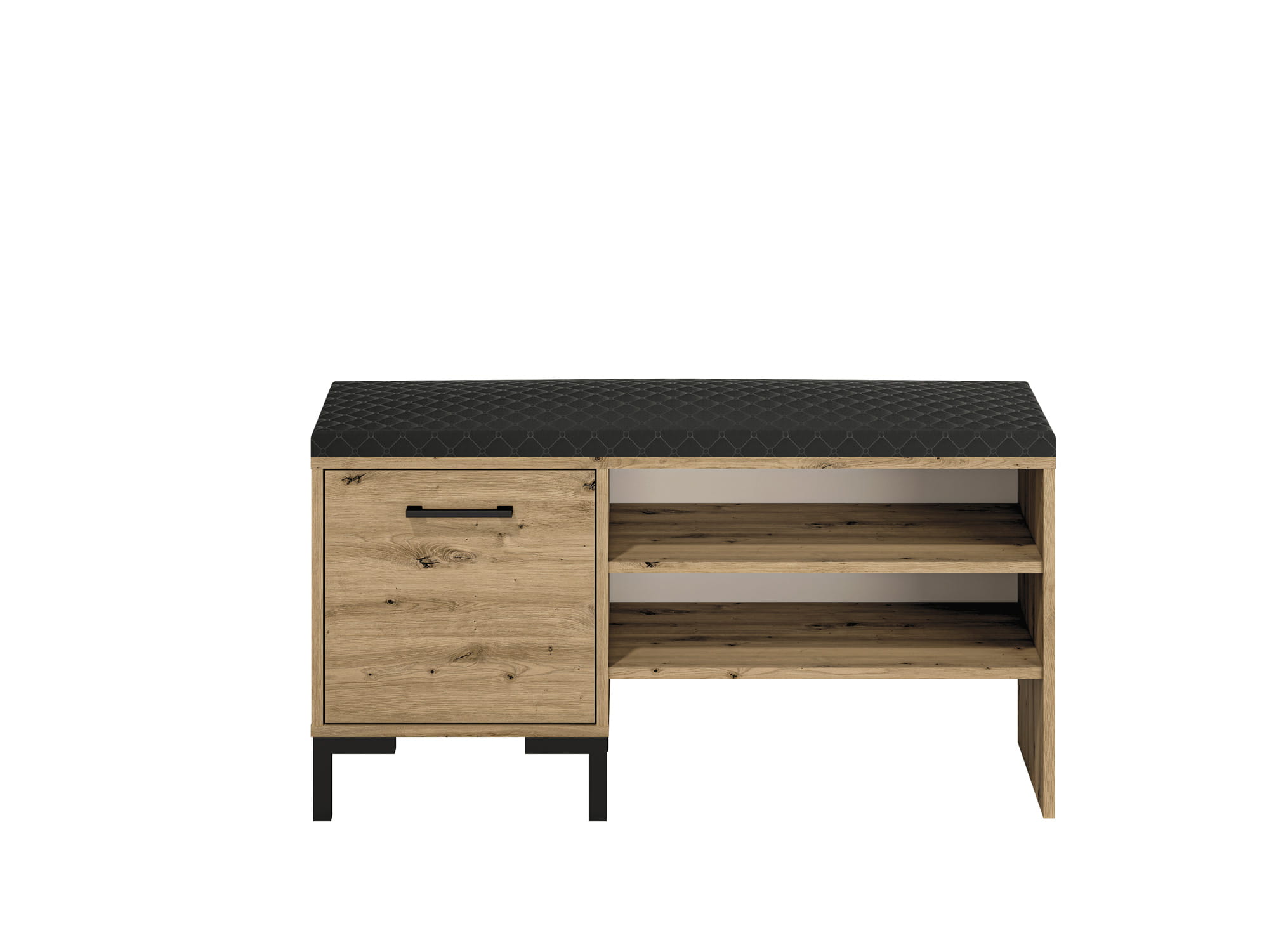 Szafka na buty NEVIO 05 to niezwykle wygodne rozwiązanie do przechowywania obuwia. Szafka została wyposażona w wygodne tapicerowane siedzisko oraz posiada zamykane i otwarte półki, które pozwolą nam szybko znaleźć swoją ulubioną parę obuwia. Ponadto utrzymanie czystości dzięki wysokim nóżkom szafki nie będzie stanowiło najmniejszego problemu.