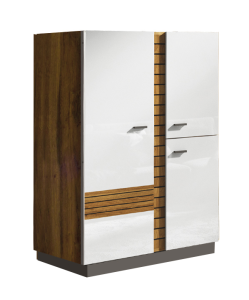 Meble wykonane są z wysokogatunkowej płyty z obrzeżem ABS w kolorze orzech.