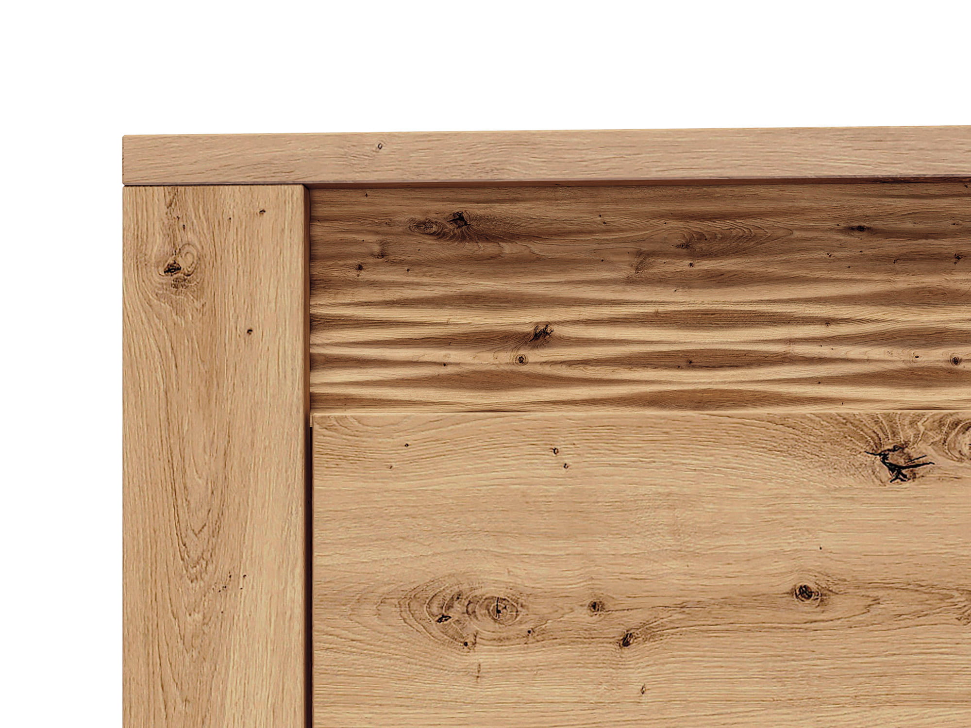 Naturalny rysunek drewna, piękne usłojenie, wyraźne sęki podkreślają charakter mebla.