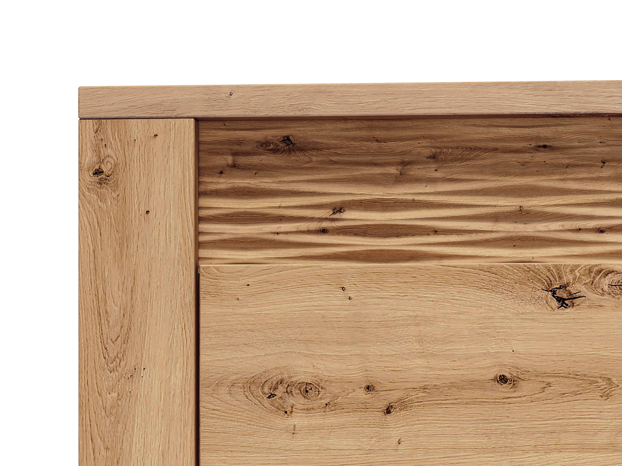 Naturalny rysunek drewna, piękne usłojenie, wyraźne sęki podkreślają charakter mebla.