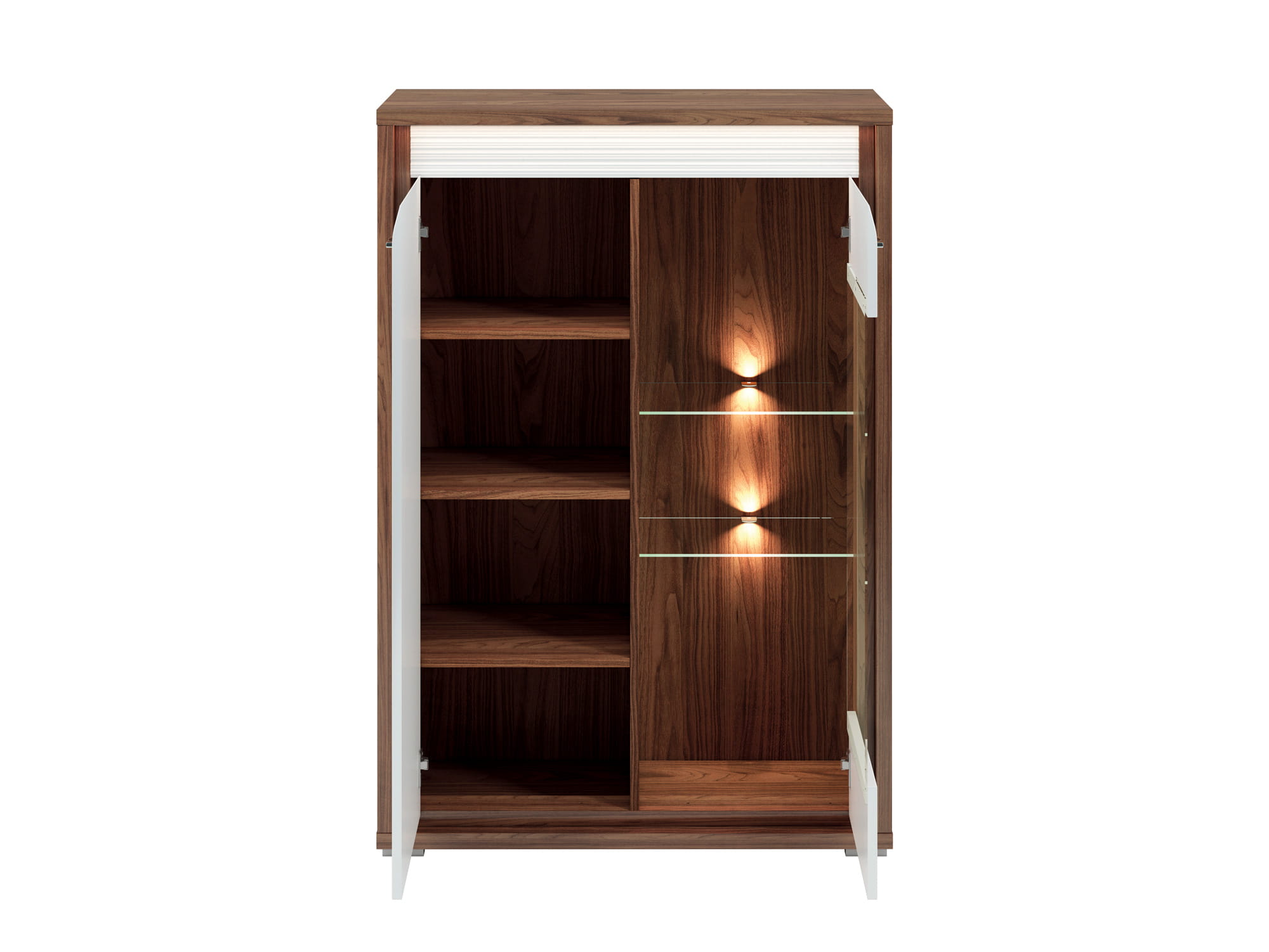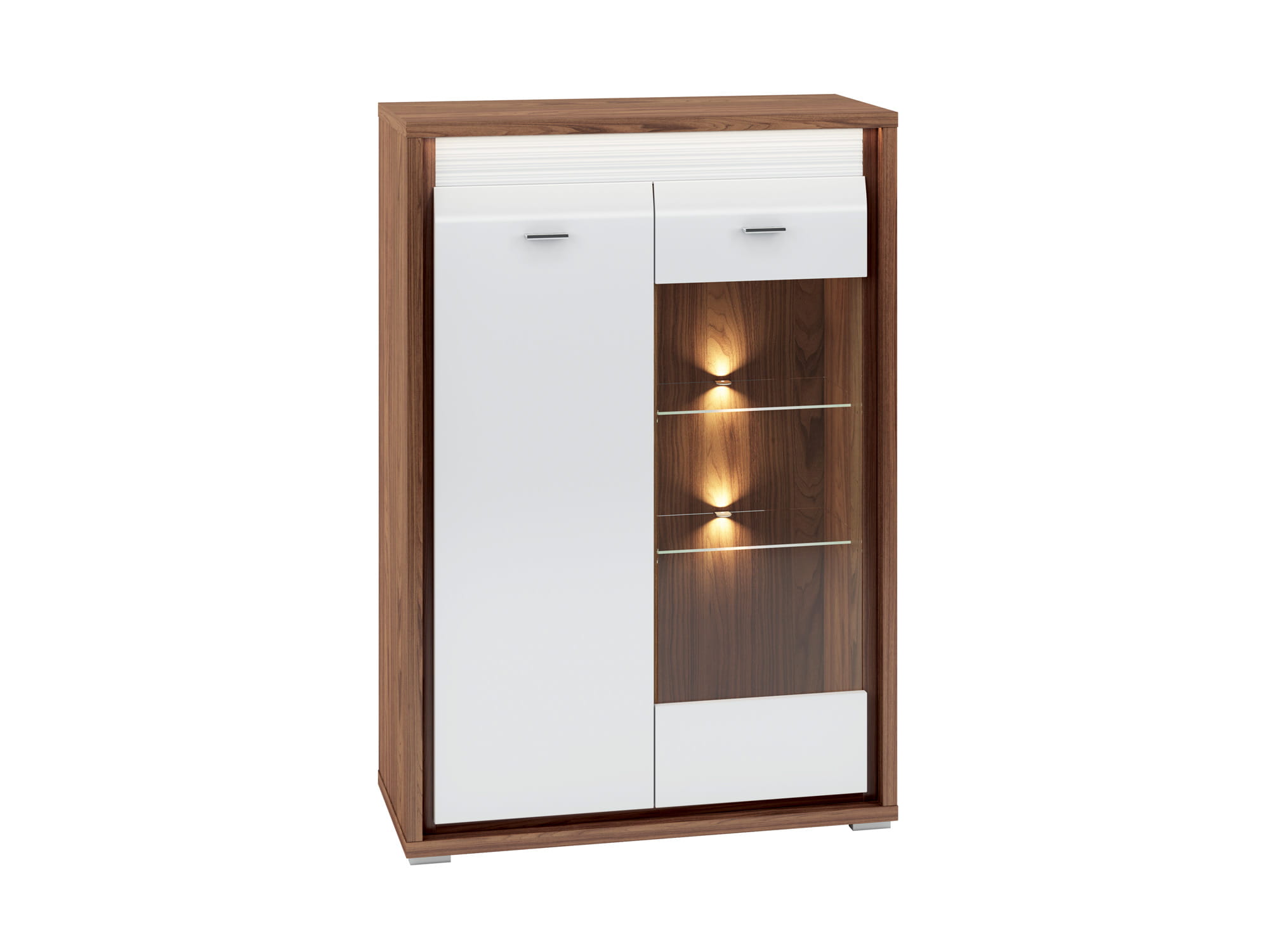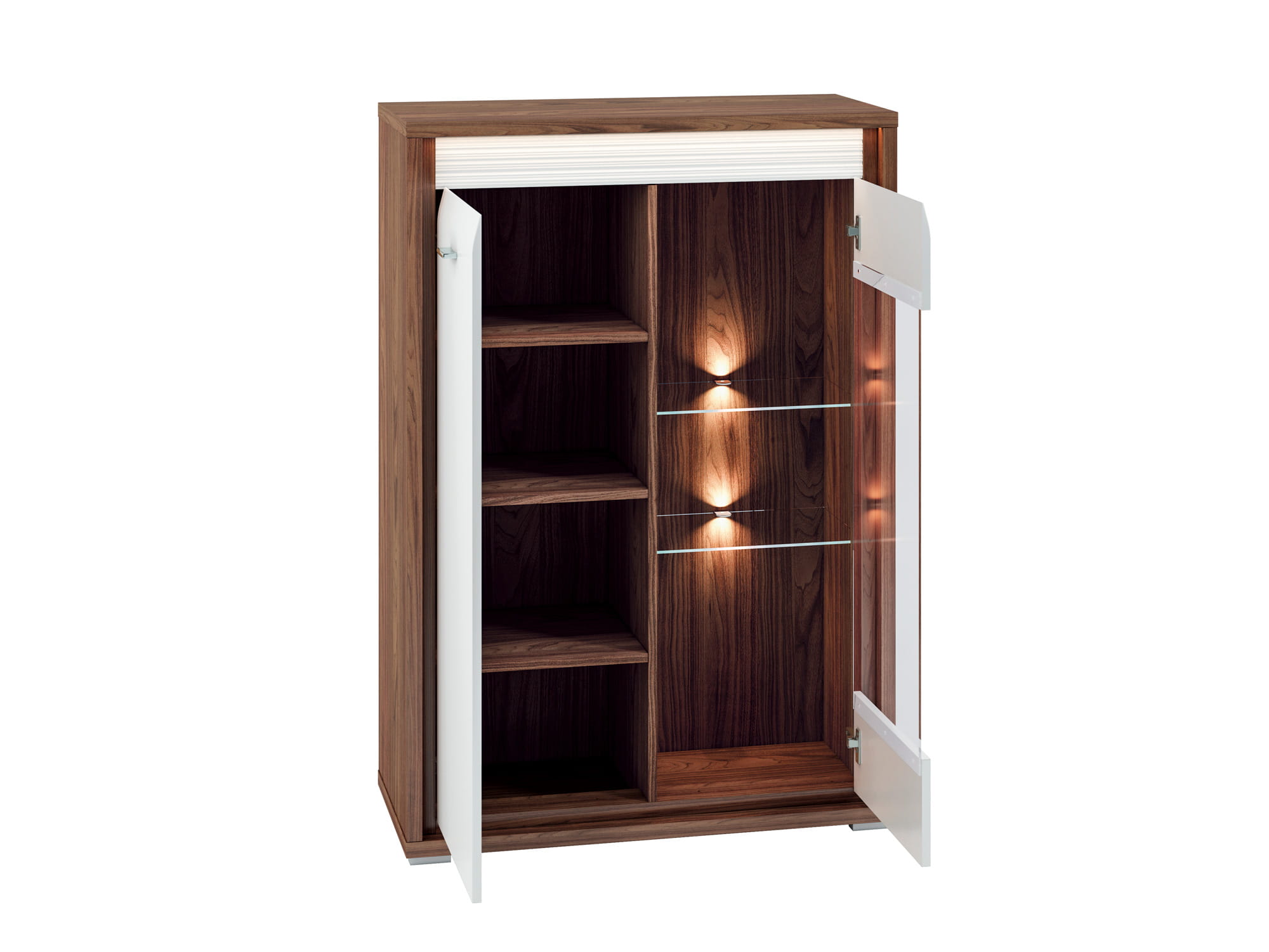 Kolekcja DALLAS to luksusowy design w nowoczesnym wydaniu. Starannie dobrane dekory, naturalny orzech i biały połysk dodają wnętrzu elegancji i świeżości. System DALLAS charakteryzują zaoblone ku górze fronty MDF, które swoim kształtem podkreślają unikalność bryły. Kolejnym atrakcyjnym detalem jest ryflowana listwa w dwóch kolorach do wyboru (biały lub orzechowy), która nadaje meblom charakteru. Całości dopełniają delikatne, metalizowane uchwyty. Wyróżnij się i przekonaj na czym polega magia dyskretnego luksusu.