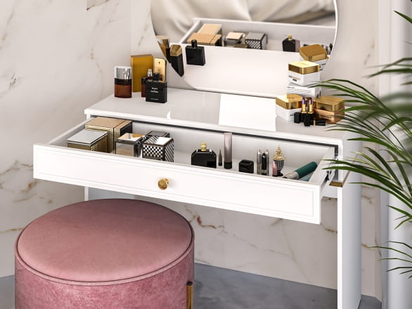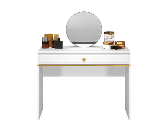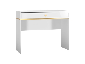 GOLDIN to kolekcja nowoczesnych mebli do salonu, sypialni czy pokoju młodzieżowego. Frezowane fronty oraz złote wykończenie wieńca dolnego stanową nietuzinkowe rozwiązanie do każdego wnętrza. Połyskująca biel dodaje prostym bryłom oryginalnego charakteru, a uchwyty w kolorze złotym podkreślają ich współczesny styl oraz nadają bryłom dużo elegancji. Modne i praktyczne nóżki sprawiają, że meble prezentują się lekko, a wnętrze sprawia wrażenie bardziej przestrzennego.
